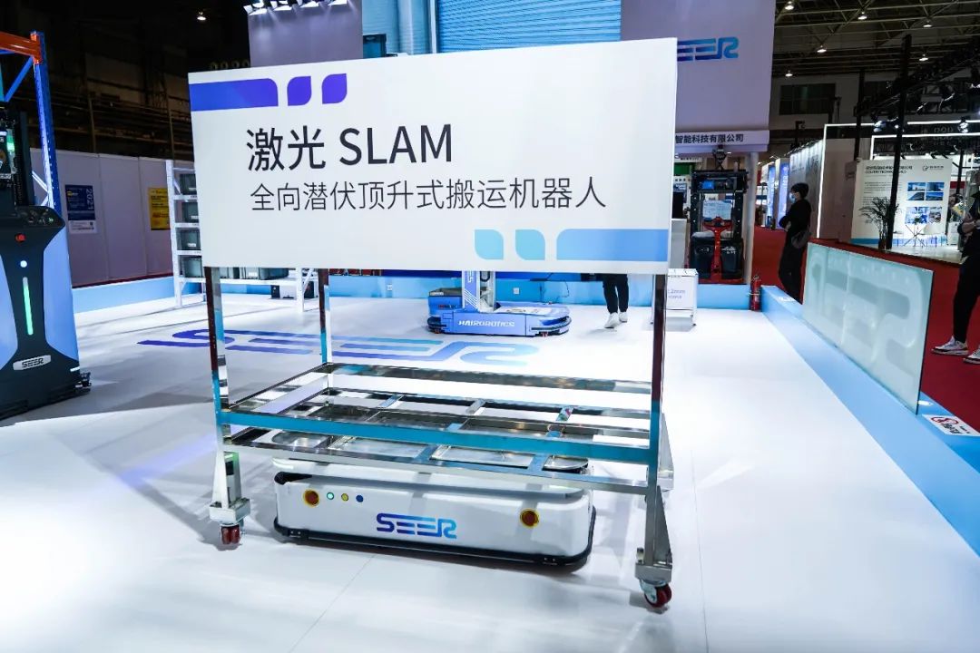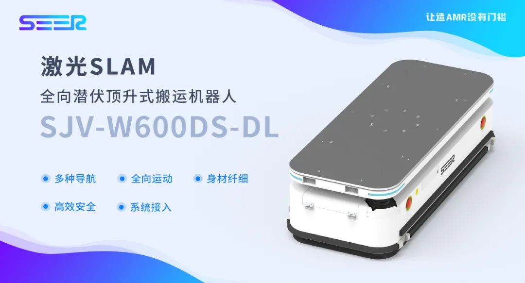本届智博会上仙工智能(SEER)携最新新品激光 SLAM 全向潜伏顶升搬运机器人 SJV-W600DS-DL 首次亮相,纤细的机身、不受限的全向移动、导航方式自由切换,引起现场观众和媒体的频频关注,注定将成为仙工智能(SEER)的另外一款爆品。