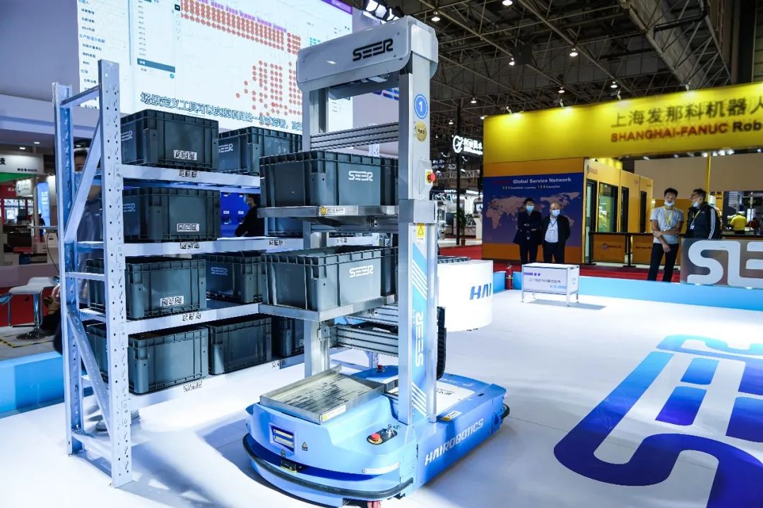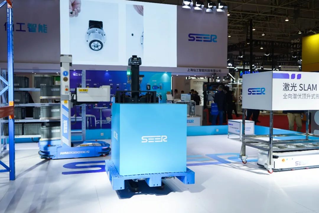 由仙工智能(SEER)与海柔强强合作,全新推出的全球首款激光 SLAM 多层料箱机器人也亮相本次展会,这款激光 SLAM 多层料箱机器人内置 SRC 核心控制器,可以实现柔性对接、精准取放,实现料箱的高效搬运,是工厂线边仓的最佳搬运拍档。