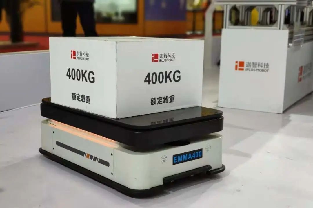 展台上展出的迦智EMMA400支持单双激光选配,可灵活穿梭于最窄70cm的狭窄通道,避开障碍物,安全、准确地将物料运输至指定工位,当前已经在半导体和电子信息行业制造工厂高效作业,减少对人力的依赖并提升工作效率。