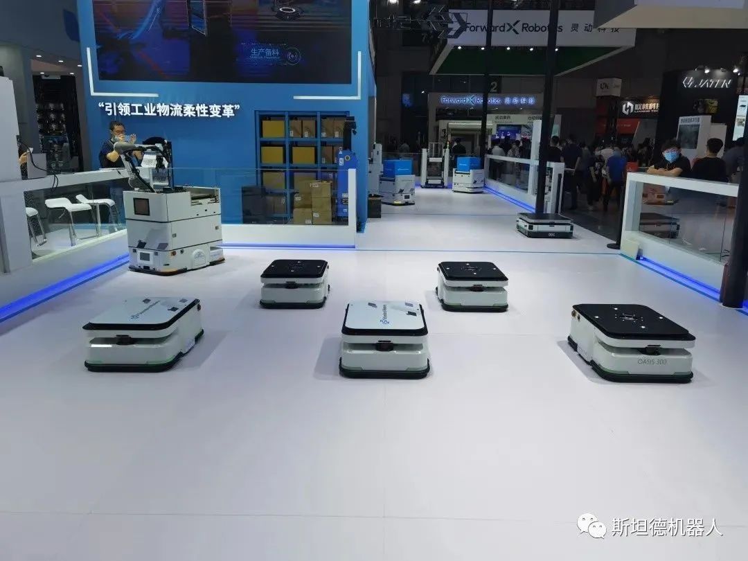工博会上,斯坦德多样化的产品组合和灵活柔性的产品演示让人眼前一亮。搭配机械臂模组、辊筒模组的OASIS系列底盘以及SMT产线上下料定制底盘,让众多客户驻足赞叹。