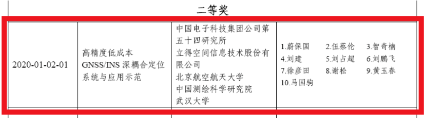 2020年卫星导航定位科学技术进步奖二等奖