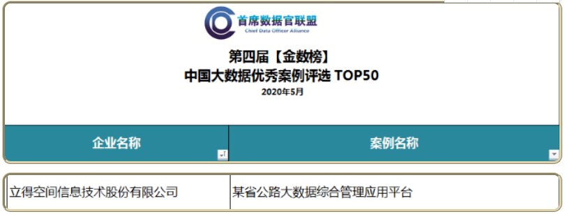 立得空间荣获“中国大数据优秀案例评选TOP50”