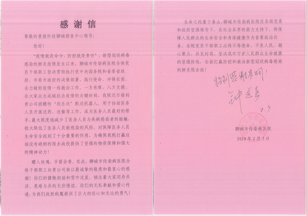 “我院近日收到‘欢乐送’配送机器人......对保障医务人员生命安全起到了十分重要的作用。”