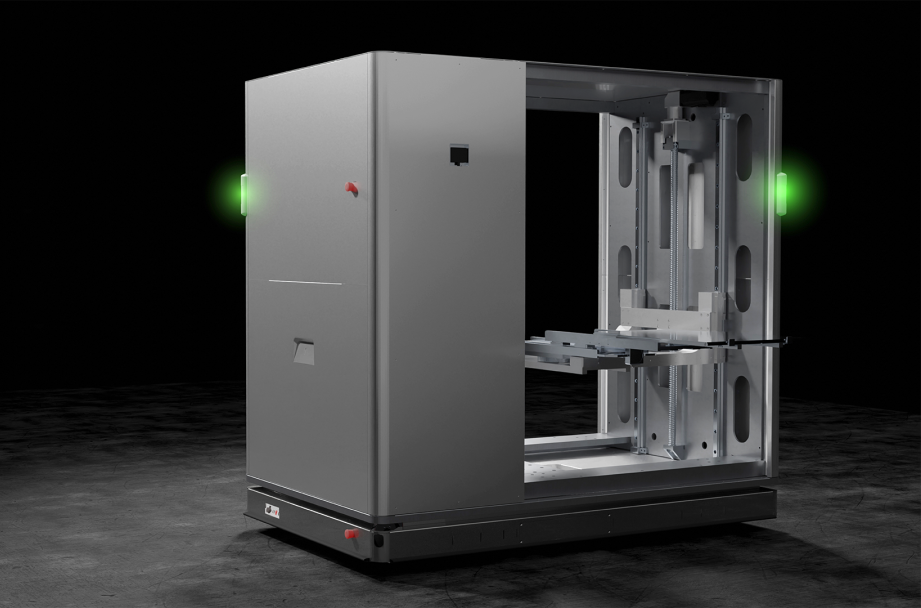 该产品采用迦智自研的重型全向自然自主导航移动底盘设计、高刚性多维侧插举升机构,无需转向就能实现上下、前后、左右共六自由度的复合运动,准确、高效地完成多维度的物料取放,同步达到±2mm的物料对接放置要求,能够满足在狭窄通道内,大尺寸设备和物料的自动上下机柜、暂存和搬运。产品通过激光雷达与视觉融合导航技术、高精度视觉伺服精确物料取放控制等核心技术,实现了车辆导航精度、库位检测精度与物料取放精度的全面提升,有效解决了用户既有场景中物料进出设备端需要人工辅助的核心痛点,实现了物料运转环节的完全无人化。