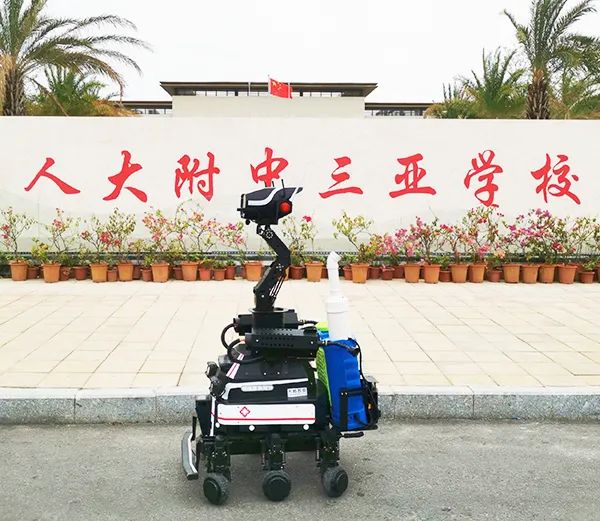在中国人民大学附属中学三亚学校,校园安保采用了人机配合模式。当人类安保人员在门卫处站岗时,ANDI机器人则在校园内进行自主巡逻,在规定区域内进行消毒喷洒动作,并且将视频、音频、有害气体等监控数据实时传输至中控后台。机器人的AI系统,能够识别陌生人闯入、黑名单人员、打架斗殴行为等,为校园安全增加科技力量!
