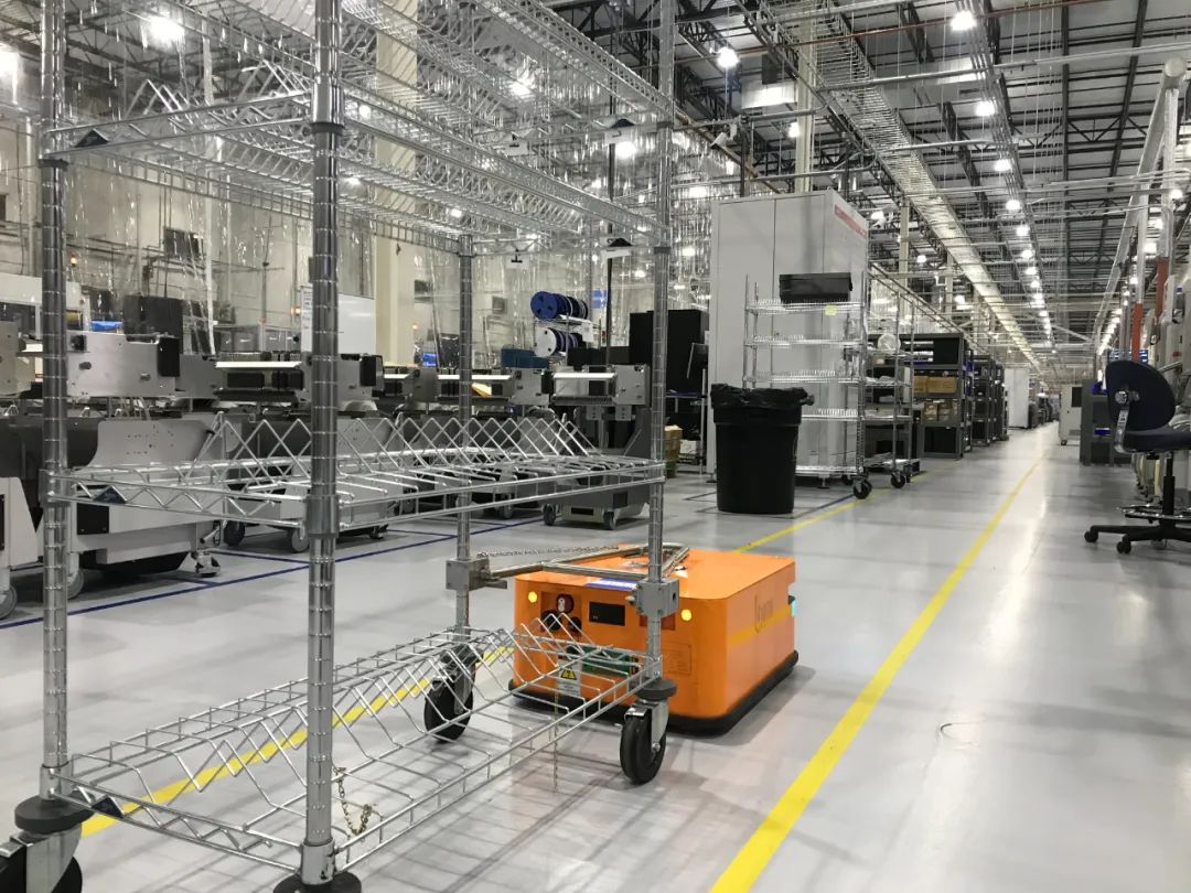 该项目是位于其美国的新建工厂,占地约10000平方米,其中两条产线需使用AGV自动化物流设备在备料区、产线、测试区搬运物料与成品。面临人力成本高昂,物流运输频繁,希望寻求一套智能化物流解决方案,以降低人力成本,提升物流效率,并作为关键一环将工厂打造成为智慧工厂的样板。