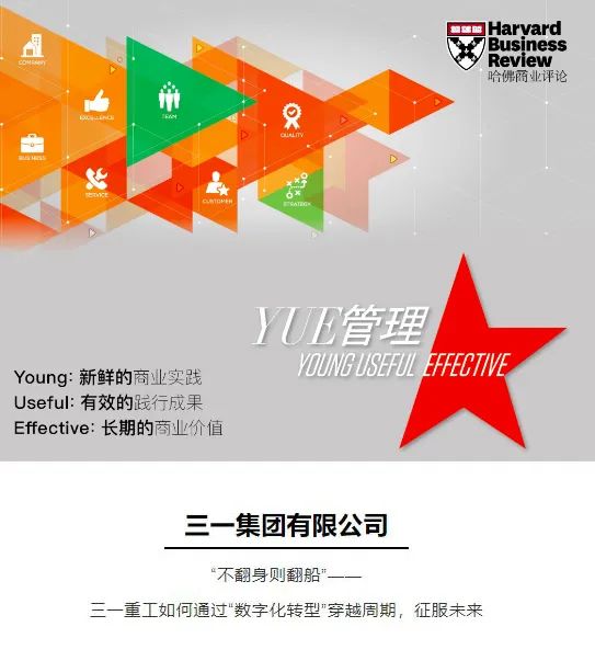 近日,《哈佛商业评论》中文版重磅发布2020年度“卓越管理奖”榜单,共评选出16例卓越实践,三一集团《“不翻身则翻船”——三一重工如何通过“数字化转型”穿越周期,征服未来》案例荣耀上榜。