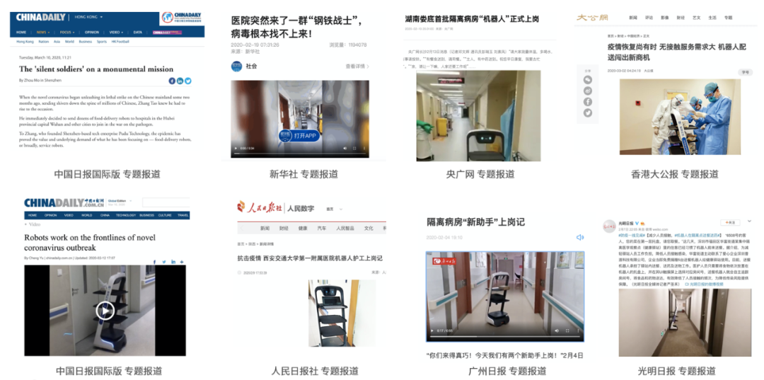 在新冠肺炎疫情爆发伊始,普渡科技以最快的速度支援全国各地疫区的医院和隔离点:在最短的时间内,通过调整生产方式、加快科技研发、调拨人力物力财力等手段对资源进行紧急调配,最终克服了封城、全国性的交通管制、对疫情一线本能的恐惧等多重困难,前往全国疫区医院及隔离点,安装部署配送机器人,让数百台机器人深入疫区配送餐食、医疗用品、生活用品等减少传染的可能性、减轻医务人员的工作强度、减少医疗防护服等物资的损耗。