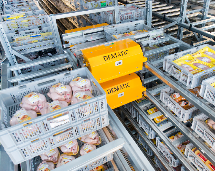 德马泰克料箱堆垛机系统充分优化了配送中心的仓储空间,在78,000个存储货位中实现了安全、高密度、高能效的存储,使得劳动力减少了2/3,同时冷藏卡车装载更及时,燃料成本降低了50%。
