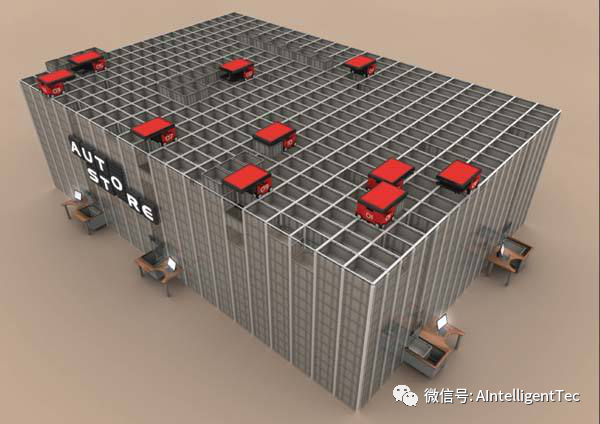 安置在顶部的抓取机器人及无需货架间巷道的立体仓库