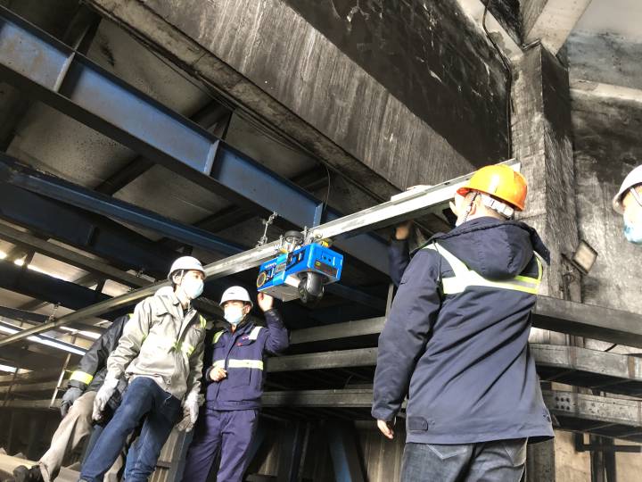 作业期间,长距离的皮带机流程连续运转,廊道空间相对封闭,工作环境噪音大、粉尘多,巡检工人需不断走动观察流程状况,不仅劳动强度大,还有一定安全风险。“随着智能化设备应用日趋广泛,镇司成立了专项攻关组。”镇司相关负责人说,结合镇海港区煤炭流程特点,积极对标国内一流水平,引入智能化设备对现有流程作业进行技术升级改造。
