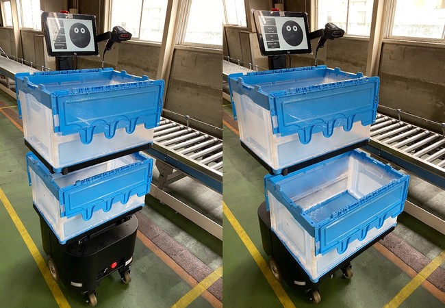 PA和Rapyuta Robotics联合开发PA-AMR机器人服务:RaaS自2020年5月在日本首次商业化以来。此次在分拣和分拣现场引入了PA-AMR,该分拣场是日本首家针对大型零售商(如超级市场和家居装饰店)日常杂货的商店。日常必需品的产品尺寸和重量存在很大的个体差异,因此在使用PA-AMR进行拣选时,需要采用不同的方法来处理产品。因此,对常规机器人进行了定制,以便可以同时安装两个比以前大的50L折叠容器(Oricon),并且要根据产品尺寸,产品重量和通过分配给PA-AMR,可以有效地操作单订单拣货和多订单拣货,并提高送货车辆的装载效率。