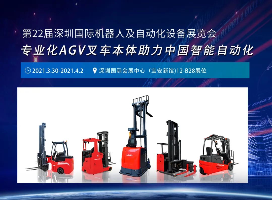 2021年3月30日,第22届深圳国际机器人及自动化设备展览会,将在深圳国际会展中心隆重开幕。作为专业的AGV叉车本体提供商,合肥搬易通将继续助力中国智能自动化行业,在展会现场,我们将与来自全国各地专家、学者、集成商、终端用户,齐聚一堂,共同探讨智能自动化行业市场及技术发展新趋势。