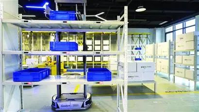 无人化搬运和无人分拣是大势所趋。“这些像扫地机器人一样的是潜伏式AGV,它们自动完成仓库里储位到工作台或者生产流水线之间的搬运。还有料箱式AGV,可以通过电脑和这边的电子分播墙来进行控制,升高后把我们想要拿出来的货物自动送到指定的位置,完成货物分拣的工作。 ”李承涛介绍说,机器人存取和分拣货物效率高,作业准确,可以大幅降低企业的运营成本。