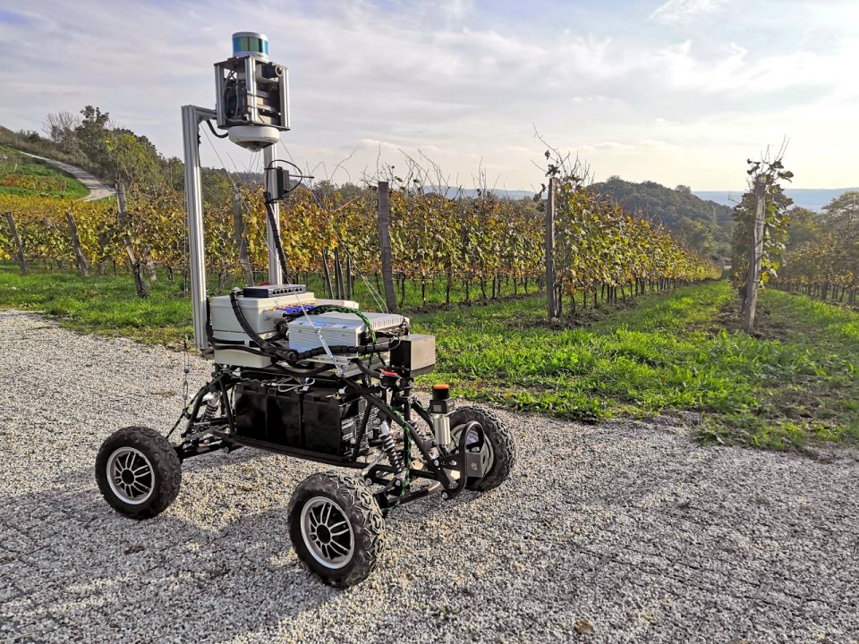 “在农业方面,我们专注于葡萄园或果园。我们计划在那里开始使用我们的履带式底盘。我们的机器人可以在葡萄园周围自主移动。当他到达一行的末尾时,他可以找到下一行并在其附近移动。例如,它可以修剪或治疗根际带。”Smolák解释道。