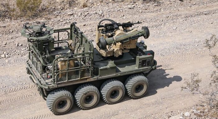 此外,名为Origin的机器人配备了人工智能,可以使多台机器协同工作。其中一个在无人机的帮助下进行侦察,然后机器人移至安全区域,侦察员将其覆盖到目前为止,因此该技术改变了角色。内置的自动目标识别(ATR)算法使机器可以识别视野内的敌方设备,并在操作员确认后销毁该设备。