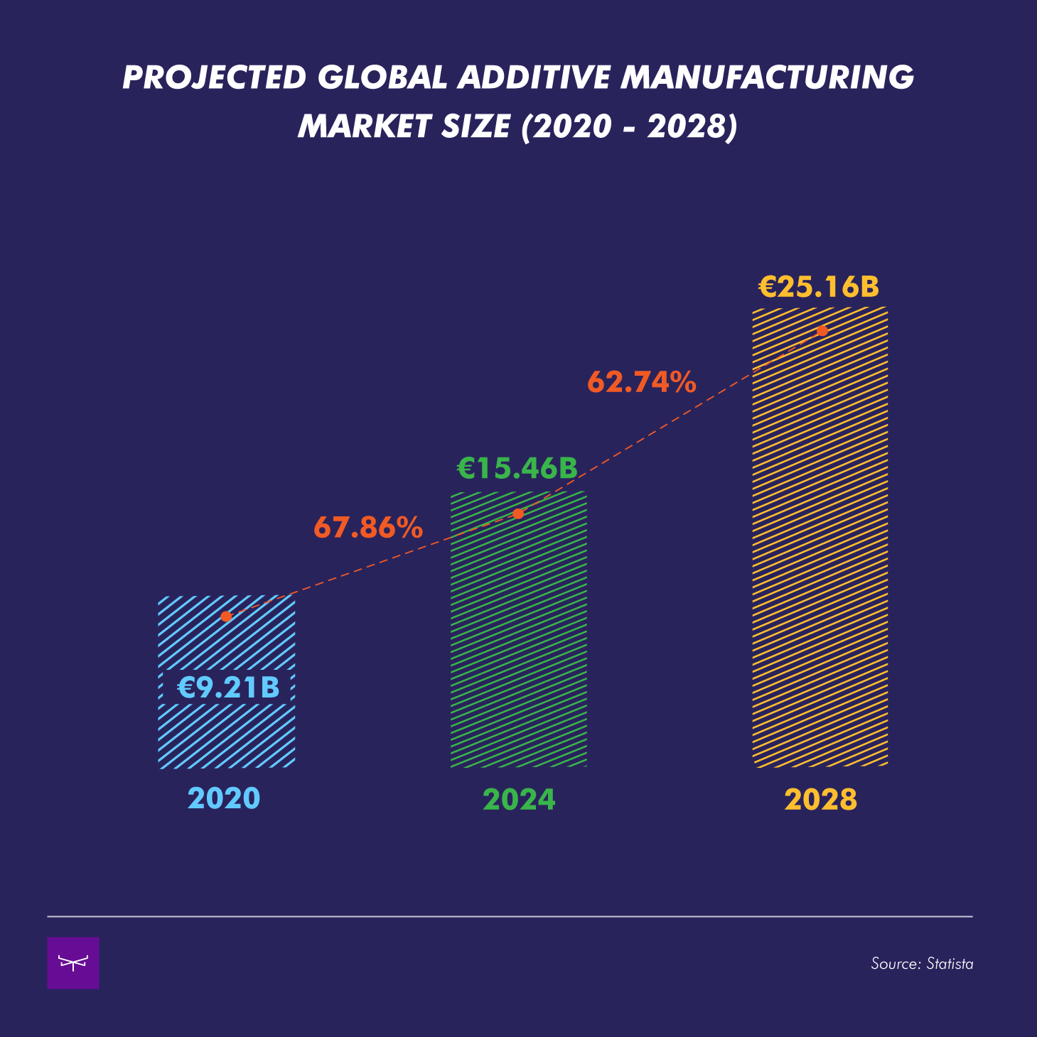 也被称为3D打印,预计全球增材制造市场将成为全球制造业中一股极具颠覆性的力量,预计2028年规模将达到251亿欧元。现场和按需生产库存的能力使企业能够维持虚拟库存,消除运输和包装成本以及能源消耗。它还有可能使用供应链中的回收材料作为基础材料。