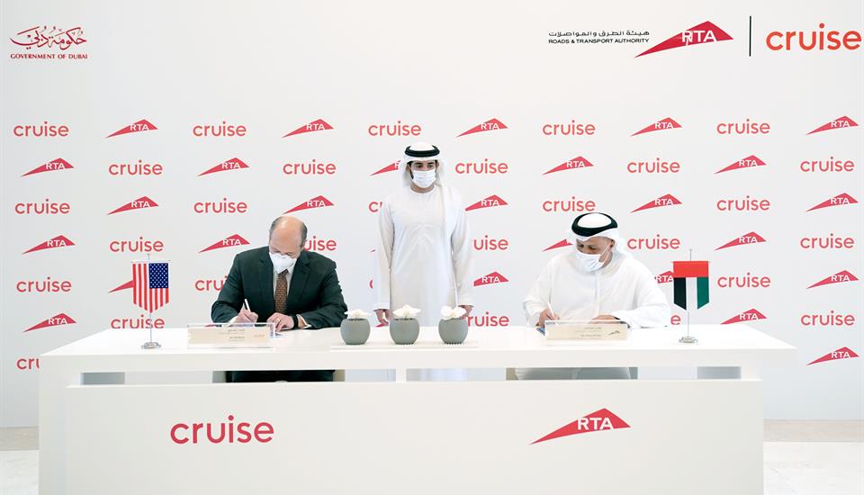 迪拜交通局总干事、执行董事会主席Mattar Mohammed Al Tayer阁下代表迪拜交通局签署了协议。前美国大使、Cruise公司首席法律官Jeff Bleich代表Cruise公司签字。迪拜行政委员会秘书长Abdulla Al Basti阁下、美国驻迪拜总领事Philip Frayne阁下和RTA公共交通机构首席执行官Ahmed Bahrozyan出席了协议的签署仪式。