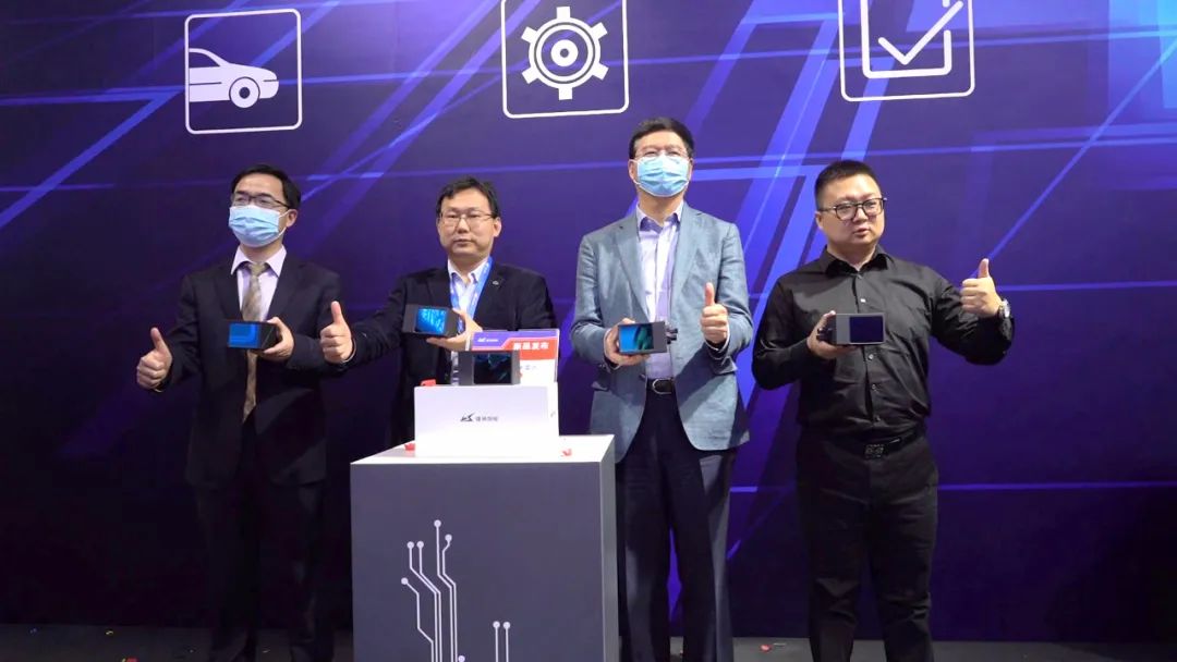 △从左至右依次为德国TUV北德集团大中华区副总裁范江锋、镭神智能创始人兼CEO胡小波、汽车评价研究院院长李庆文、蘑菇车联副总裁詹宏波