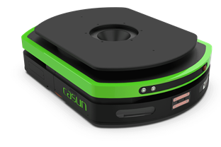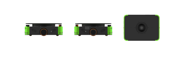 车体采用双轮差速驱动,可以实现前进、后退、旋转等运行方式。同时举升机构可与车体实现相对旋转,如托盘不动车体旋转,可灵活应用于通道狭窄或有特殊搬运需求的场景;