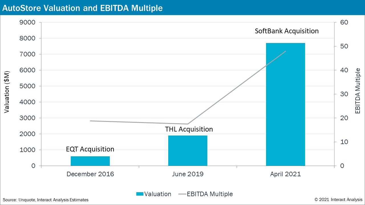 AutoStore惊人的估值轨迹和EBITDA倍数为仓库自动化领域描绘了一幅阳光灿烂的图画。COVID-19看到了对仓库自动化设备的需求猛增。例如,Automatic的许可合作伙伴之一Dematic在2020年第二季度记录了仓库自动化订单接收量的100%增长。软银正在形成强大的物流投资组合,而AutoStore有望使几乎所有软银的物流投资受益。