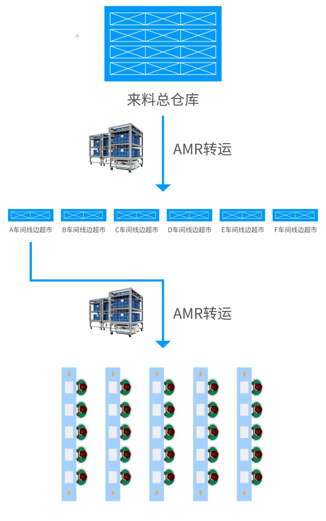 装配段主要是将原料送到生产线。在原始人工配送情况下,装配线线边一般会堆积一个班的生产物料,导致现场库存增加。导入柔性物流方案后,可以通过少量多次的配送方式,减少线边物料堆积。同时通过线边库位管理系统,实时了解产线用料情况,实现物料信息透明化。