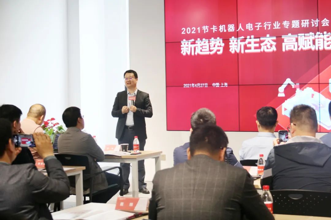 2021年4月27日,“新趋势 新生态 高赋能”—— 2021节卡机器人电子行业专题研讨会在节卡机器人上海总部隆重举行。众多行业专家、学者、领军企业代表等出席,共聚一堂,共同探讨协作机器人在电子制造领域中技术和应用的发展。