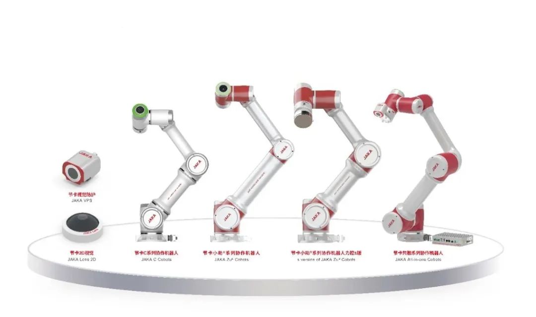根据市场和客户的需求,节卡协作机器人衍生出的产品矩阵包括,第一代协作机器人小助系列,主要功能体现在人机交互和安全性上;第二代力控机器人系列,搭载工业级力觉传感器,配置自研力控算法,提供恒力、法向跟踪和速度模式等多种力控解决方案,实现机器人的自适应控制,从而拓展了机器人的应用范围;第三代共融系列,深度融合视觉和力控,集成视觉抓取、软手、视觉检测能力,自研算法大幅提高安全性、交互性、灵活性。此外,节卡还推出了复合机器人、机器人工作站等应用标准品。