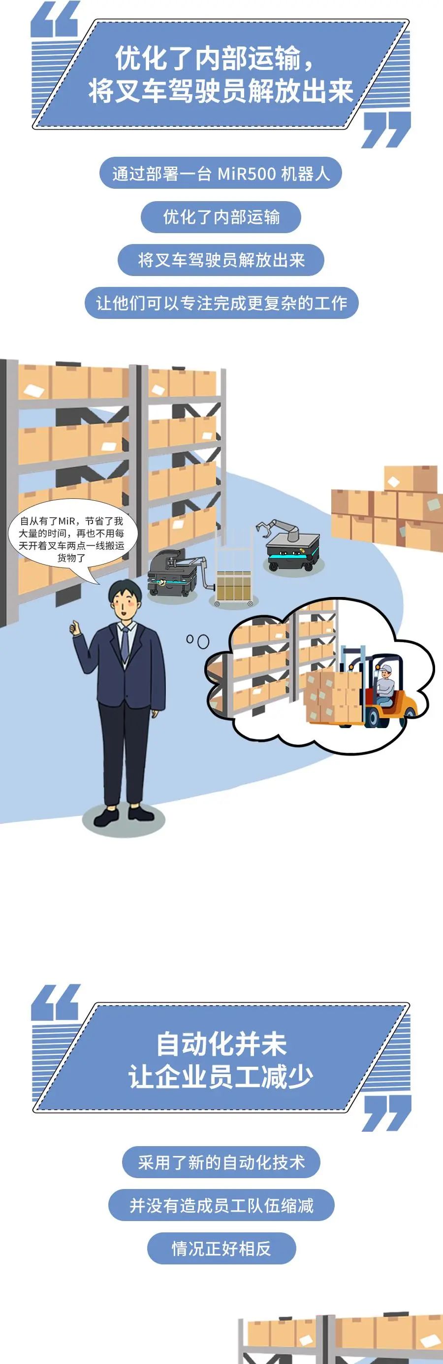 MiR致力于研发简单易用且灵活安全的机器人,帮助各类公司提高运营效率。MiR的自主机器人是新一代的先进移动机器人,具有投资回报快的特点,通常一年内就能收回成本。这些独特的协作机器人现已在工业及医疗保健行业大放异彩,帮助这些行业的制造商实现内部运输自动化。
