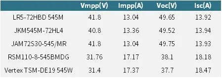 在系统电压不超过1500V的情境下,我们需要关注组件因采用大尺寸硅片技术所带来的大电流影响。以市场上主流企业545Wp组件为例,可以看出,210mm组件的最大功率点电流已经超过17A,短路电流超过18A,几乎是156mm和166mm组件电流的两倍。从选型的角度来说,210mm组件需要配备30A左右的接线盒和连接器。