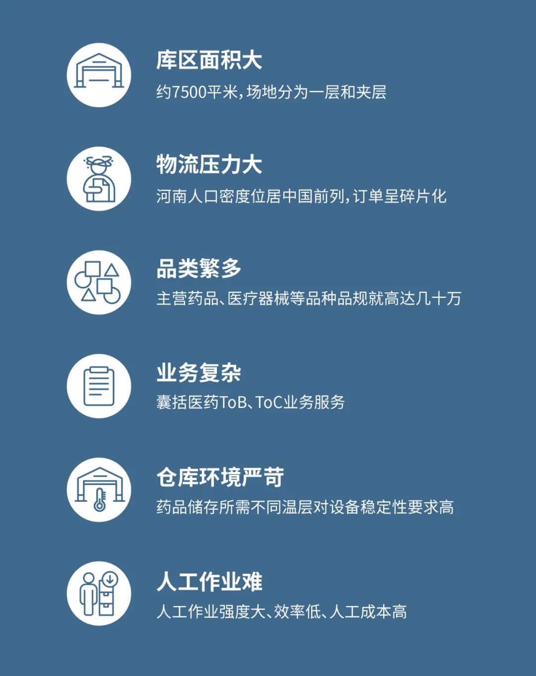 近年,由于旗下医疗和医药两大业务板块在河南发展迅速,原有物流中心已难以满足市县乡甚至到村的医药物流服务功能: