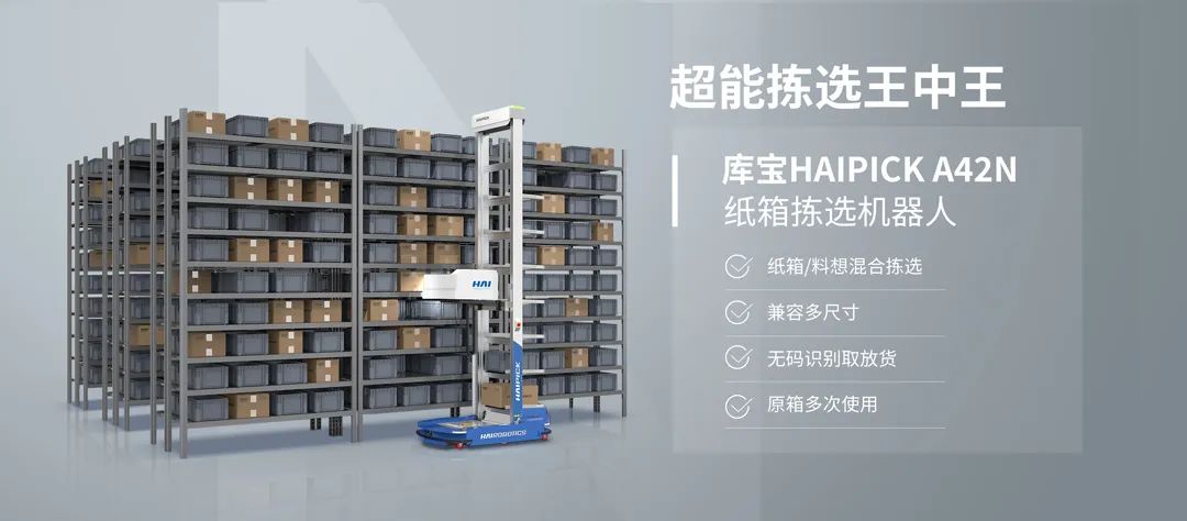 海柔创新研发的全球独创纸箱拣选机器人库宝HAIPICK A42N,首次打破机器人仓库自动化改造对货箱容器的限制,赋予仓储更多柔性。HAIPICK A42N支持不同尺寸的纸箱/料箱的混合拣选,配置先进的3D视觉识别技术,能够实现无码识别取放货,适用于拆零拣选与整箱拣选等多种业务场景,满足各式仓储需求。