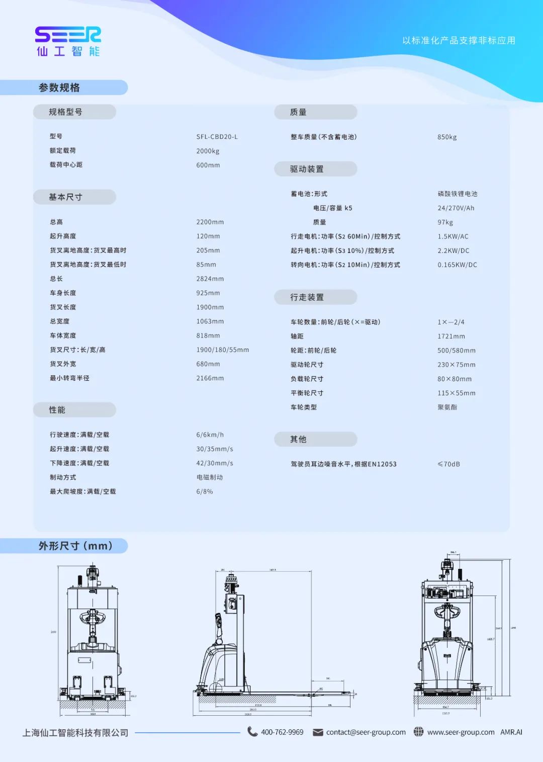 详细数据可以查看激光SLAM搬运式叉车SFL-CBD20-L的参数表。
