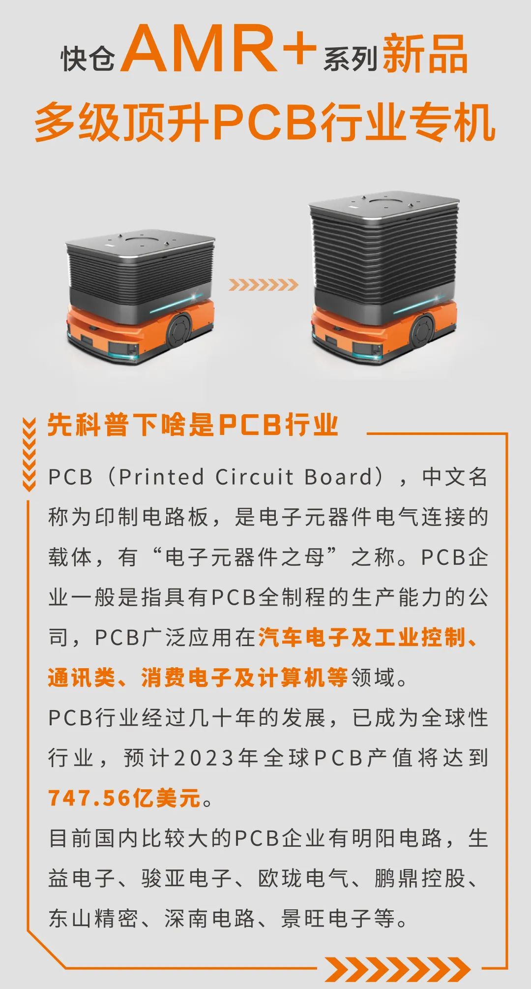 快仓AMR+系列新品—多级顶升PCB行业专机