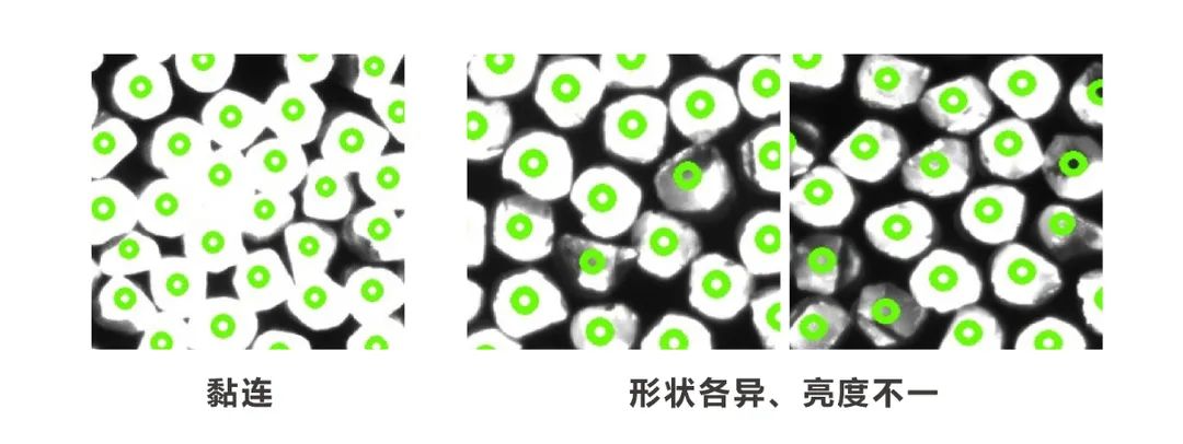 1、方案兼容性好,能够较好适应重叠、黏连等情况,对于形状、亮度不一的物体也能较好检测。