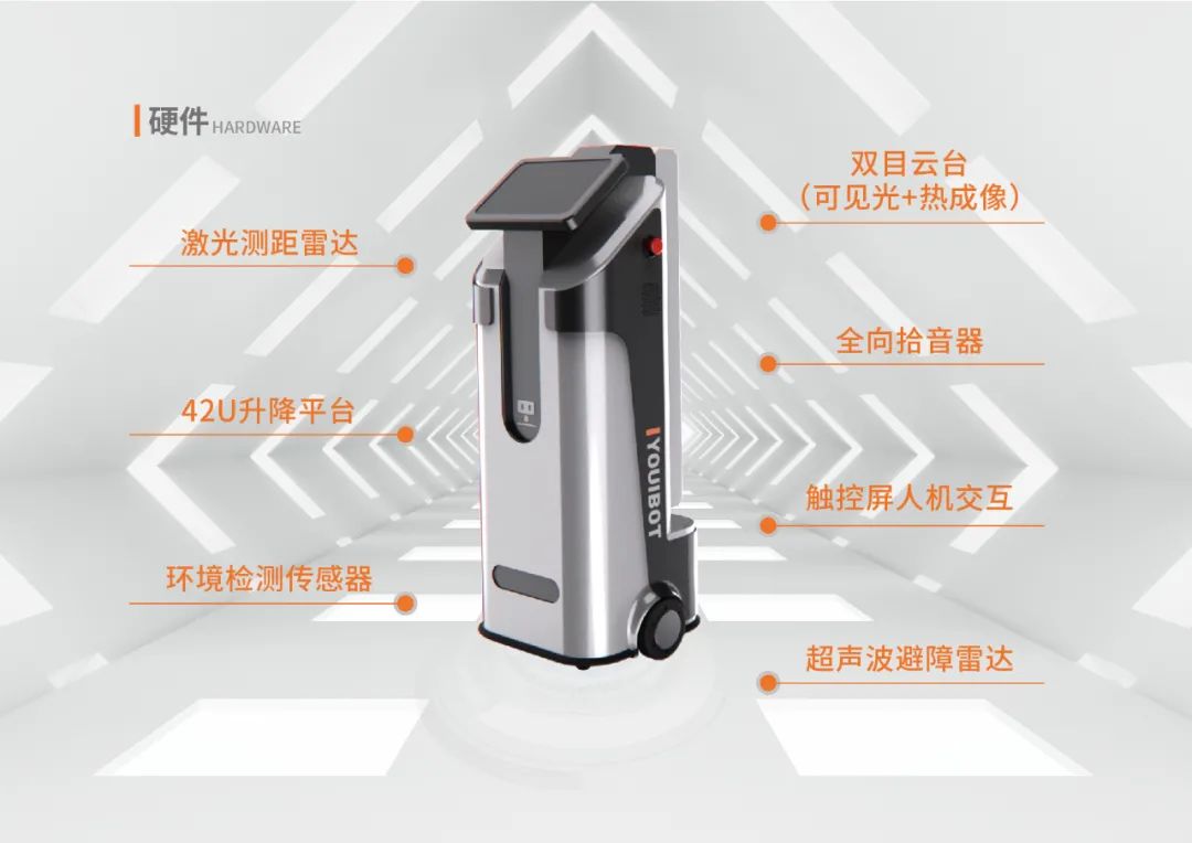 AI⾃主深度学习+机器视觉算法优艾智合机房巡检机器⼈基于边缘⼈⼯智能计算平台,可进⾏AI⾃主深度学习。在机器视觉算法的配合下,智能巡检机器⼈在每次巡检时通过摄像头对机柜的指示灯、仪表盘、液晶⾯板、开关等元件进⾏监测和学习积累,不断提升识别的准确率。当发现有设备状态异常时,机房巡检机器⼈会第⼀时间通过后台告警、短信、邮件等多种⽅式通知运维⼈员,并⾃动引导运维⼈员到相应机柜进⾏处理。动环监测温湿度检测:主要检测机房内温度和湿度,保障机房内设备在符合标准的情况下运⾏。噪声检测:主要检测来⾃机房内服务器和⾼速运转设备的噪声,即时检测硬件设备运⾏的情况。异味检测:主要检测电缆电线燃烧前挥发的烟雾和毒性⽓体,提前预防对硬件设备造成的腐败,特别是机房内服务器、UPS配电柜等。空⽓质量检测:主要⽤来检测机房内空⽓中的粉尘浓度,降低电路与元器件绝缘性能和腐蚀电路板缩短设备寿命,防⽌堵塞防尘⽹,影响IT设备散热效率。业务监控全⾯告警:从日常运维中实现对IT基础设施的实时监控、故障管理、性能分析及配置优化,从根本上确保业务的健康稳定运行,进一步提高网络支撑环境的运营质量,采用有效的维护手段,为业务的发展提供强有力的支撑和技术保障。设备盘点资产盘点:设备视觉盘点任务⽀持⽴即巡检和每⽇盘点⼀次的模式,主要针对设备的异常移⼊移出;当发现变化时,机器⼈与软件平台联动,及时发出声光告警并通知运维⼈员,形成盘点数据报表。智能迎检⽀持⼈脸识别身份验证,⻔禁控制,六⻨克⼈机交互,引导⼈员进⼊指定⼯作地点,定点语⾳讲解功能,在线实时对讲功能。