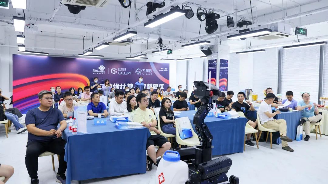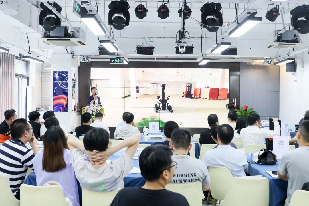 本次沙龙主办方安排了现场交流环节,大陆智源工作人员在现场为各位来宾展示防疫版5G-ANDI-安防巡检机器人和5G版-小白移动运输平台。现场嘉宾和学者对两款产品产生了浓厚的兴趣,并与高源进行深入的专业探讨,现场交流氛围十分热烈。