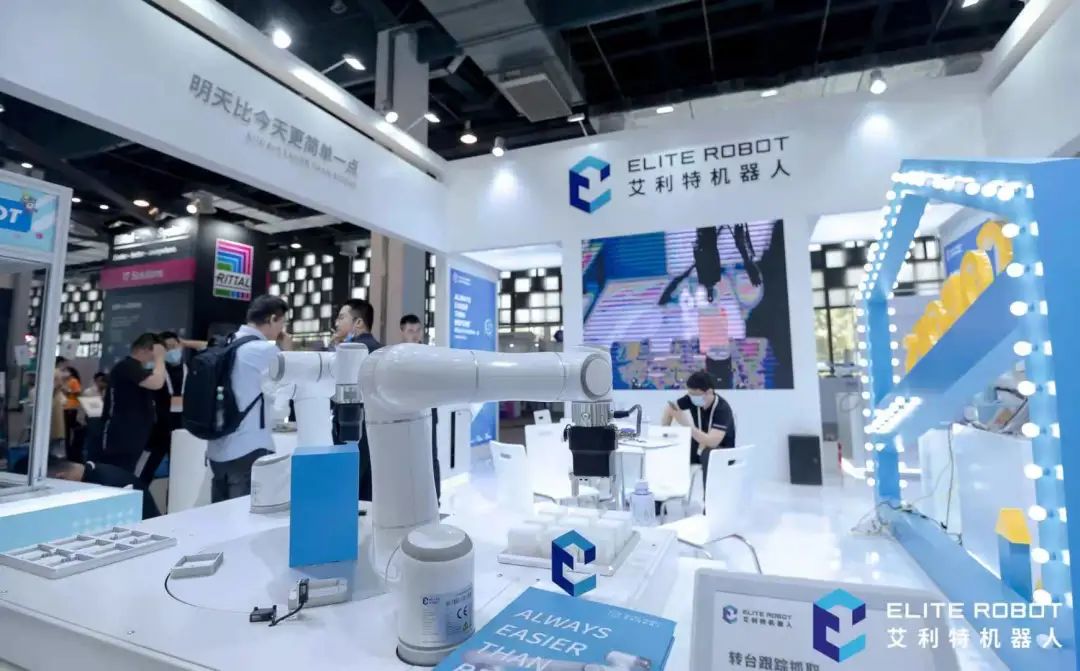 2台艾利特EC63协作机器人搭载巴毅电爪实施抓取,其中1台EC63完成将治具中的产品移载到转盘治具上的动作,另一台EC63完成跟踪抓取的动作,并将产品放回治具。产品具有高定位精度和跟随功能,降低了自动化的投入成本,也使得产线升级变得更加灵活高效。