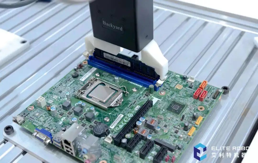 艾利特EC66协作机器人与巴毅电爪匹配,完成精准的移载装配动作。模拟服务器生产过程中,内存条和CPU的移载装配动作,通过一套多功能手指实现多个抓取安装动作。基于艾利特协作机器人高定位精度和稳定可靠的特性,使高要求的抓取装配更易于实现。