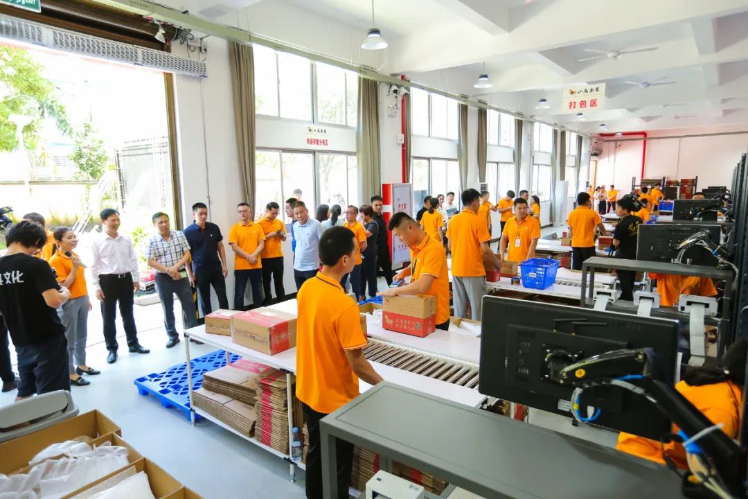 仓技术人员的带领下,一众领导嘉宾参观八马电商智能仓,体验茶叶仓储的全新模式。