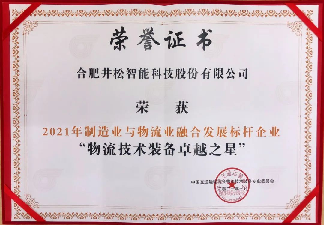 为表彰先进、树立标杆、激励进步,大会结合了“两业”融合优秀试点案例,开展“物流业与制造业融合发展标杆企业”表彰和创新成果展览展示工作。井松智能作为行业头部智慧物流系统解决方案与制造提供商,凭借多年产品深耕并不断追求先进的生产技术迭代升级、科学的管理体系、顶级的品控标准,最终斩获“物流技术装备卓越之星”。