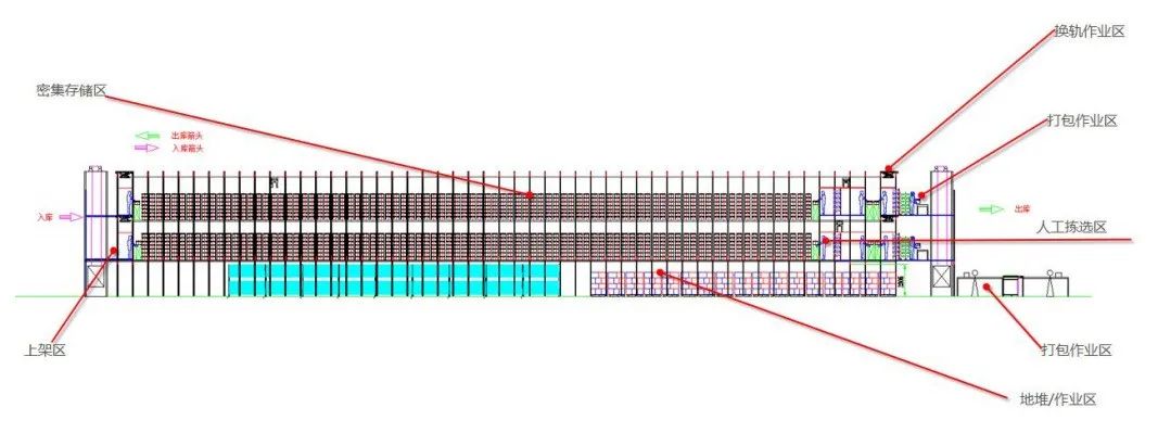 仓库占地面积5760平,设备建设面积2962平方米,建设312货轨组12组,建设PSS有效轨道66列,每列轨道88排( PSS二三层88排),堆高7层(PSS二三层7层堆塔),前期投入PSB抓箱机器人46台,PST换轨机器人4台。