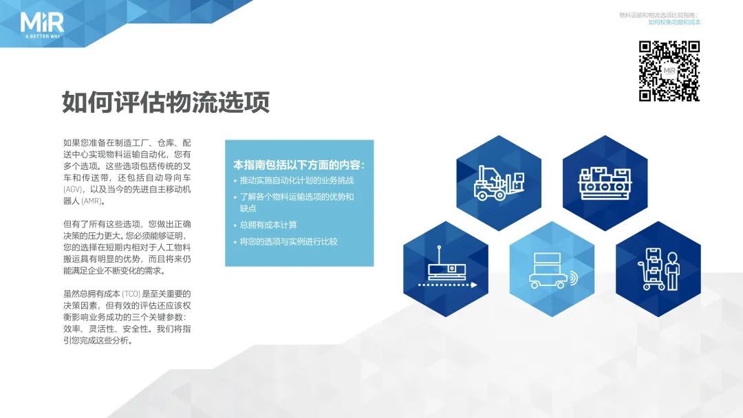 MiR致力于研发简单易用且灵活安全的机器人,帮助各类公司提高运营效率。MiR的自主机器人是新一代的先进移动机器人,具有投资回报快的特点,通常一年内就能收回成本。这些独特的协作机器人现已在工业及医疗保健行业大放异彩,帮助这些行业的制造商实现内部运输自动化。