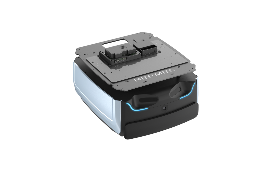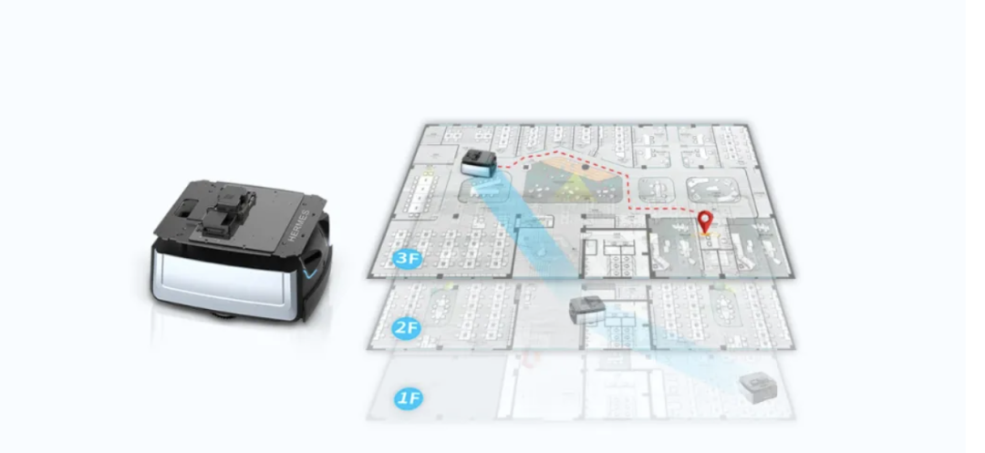 8月底,Hermes赫尔墨斯™机器人底盘问世了,这是首个集成梯控,能自主乘梯的机器人底盘。当问及命名的逻辑,陈士凯诙谐的解释道,Hermes是众神的使者,思岚产品的命名规则是取古希腊神话中众神的名字。多楼层配送很像一个“使者”,就取名Hermes赫尔墨斯™。