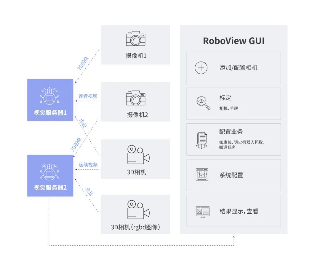 生产型企业的数字化解决方案如果说 SRC 系列核心控制器是最强大脑,AMR 是其强而有力的四肢,那么企业数字化系统便是智能工厂的心脏。数字化转型是国家发展的大势所趋,仙工智能在日积月累的项目实践的积累中,打造多款适用于智能工厂场景的软件产品,包括仙工智能涵盖 RDS(机器人及自动化设备统一资源调度系统),MWMS(仓储物流管理系统),SEER V(数据可视化系统)。从各个维度助力企业数字化转型,为智能制造及智慧物流提供强大的技术支持。05RoboView 视觉 AI无序抓取,库位管理!而在视觉 AI 方面,即使搭载先进的激光,机器人在运行的过程中难免会遇到各种复杂环境的情况,这时需要仙工智能RoboView 视觉 AI 解决方案!