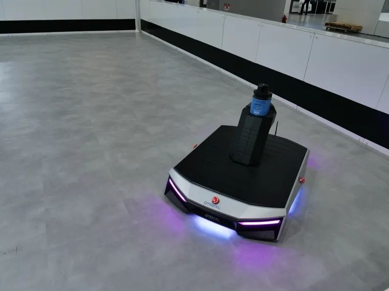 ▲ 展会现场演示作业的LASER GUIDE AGV(照片:Hello T)