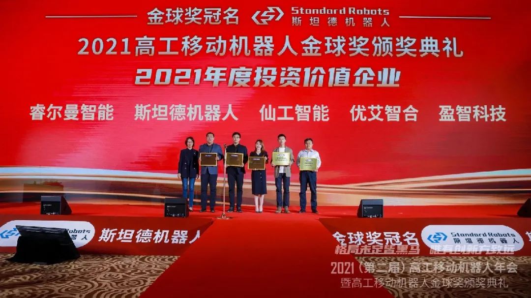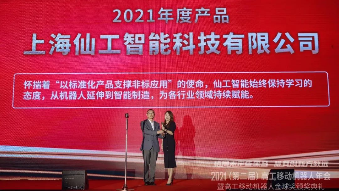 仙工智能坚守的产品理念、坚决的为行业带来改变的决心、坚持积极推动行业发展的成果,受到了行业的认可与赞誉,将本次金球奖颁奖典礼 2021 年度产品奖与 2021 年度投资价值企业奖两大奖项收入囊中,仙工智能市场总监杨丽代表仙工智能上台领奖。