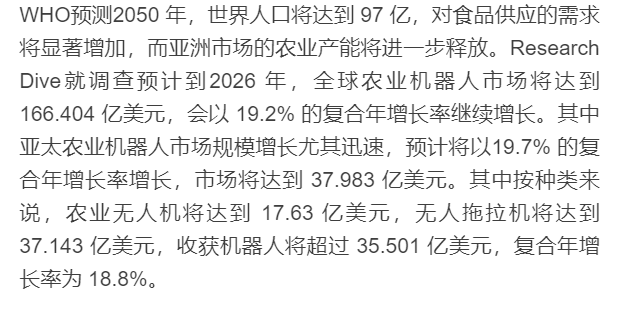 5年规模上百亿,2060年种够97亿人的粮食,农业机器人大有可为