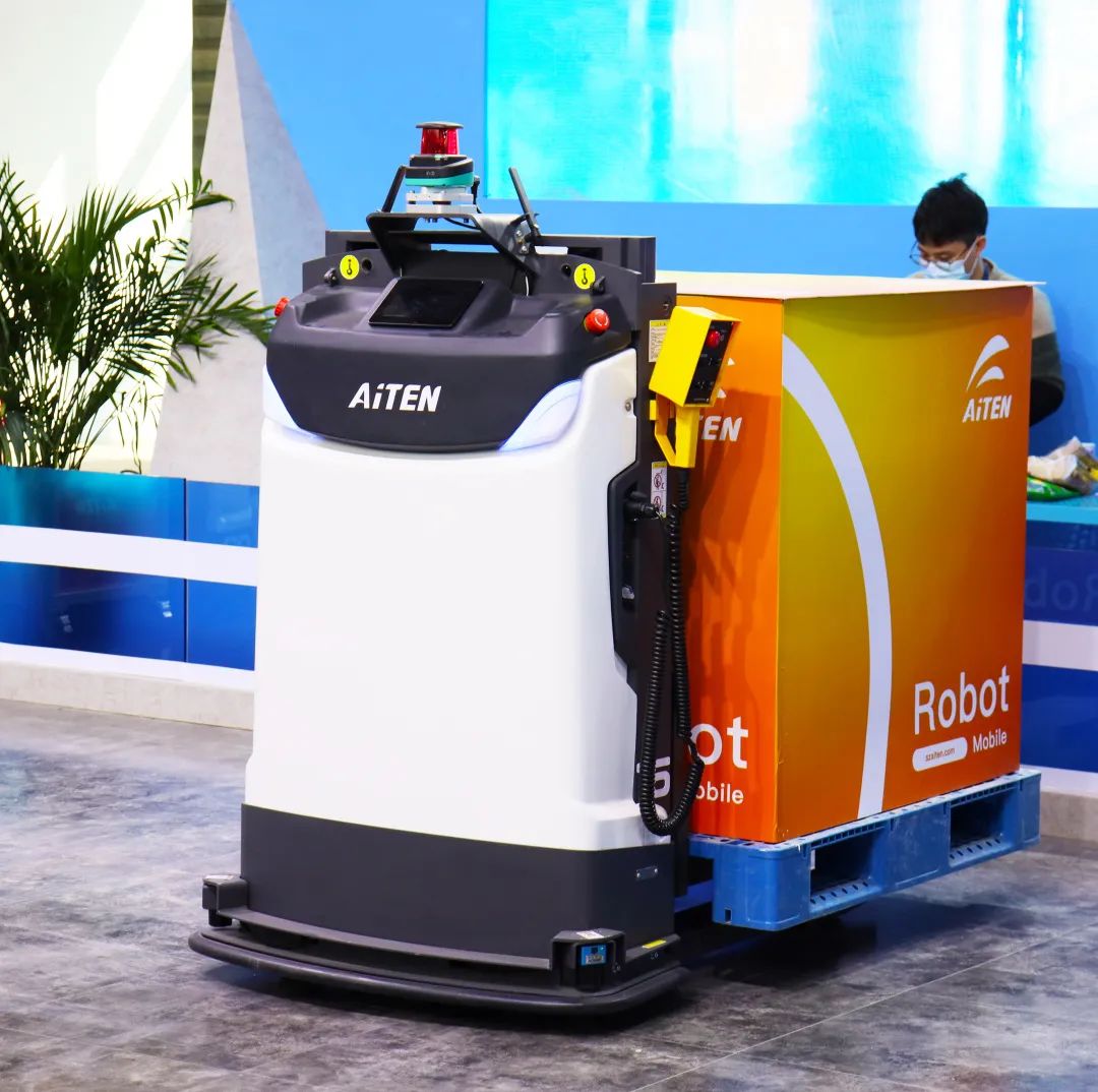 AiTEN海豚之星现场带来了6款明星产品,包括小海豚搬运机器人MP10S、堆垛搬运机器人AM15、料车搬运机器人AL02等AGV机器人及创新技术,展示了小海豚机器人在仓储运输中的便捷高效。