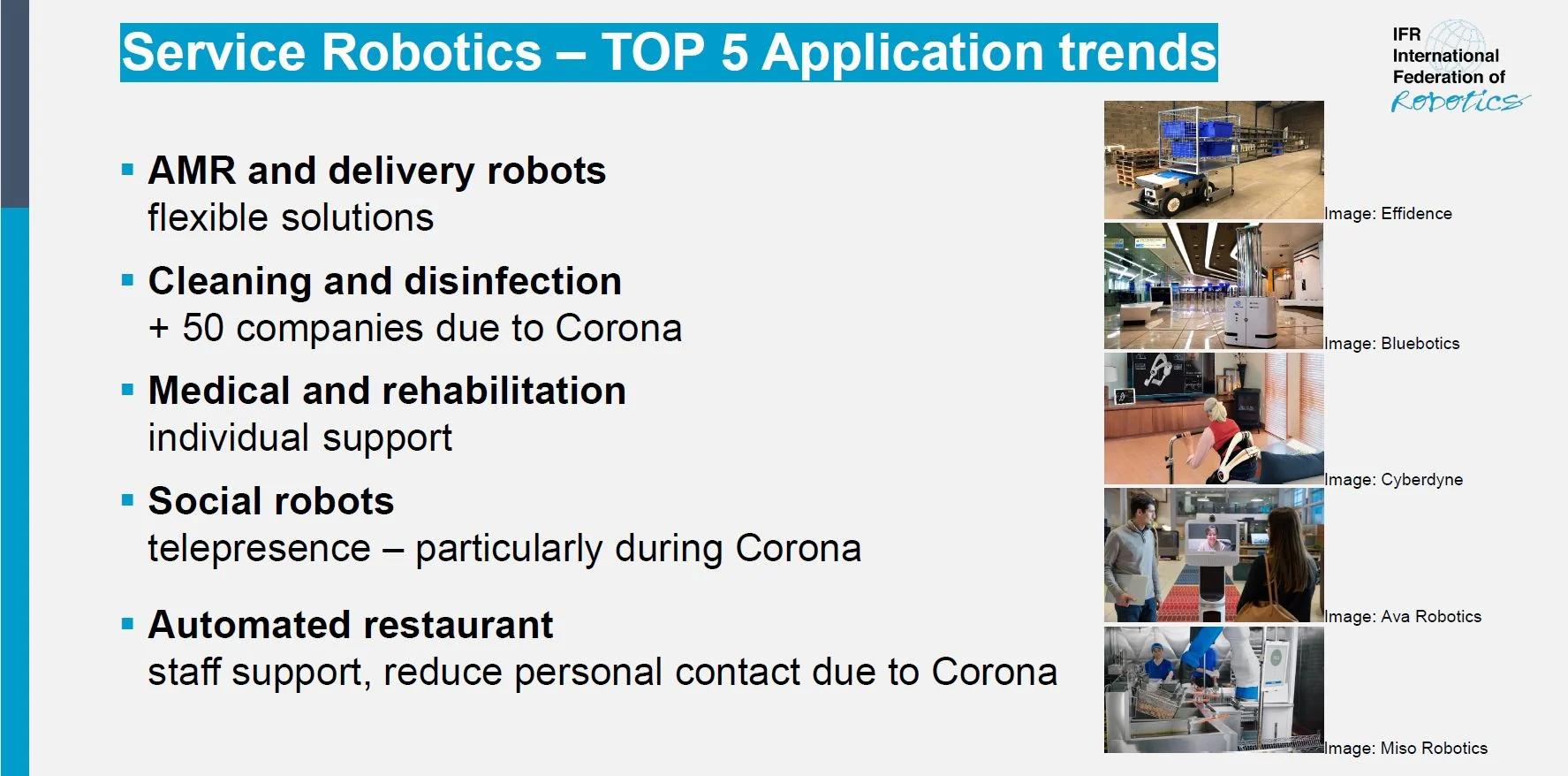 五大顶级应用趋势的专业服务机器人是由全球性流行病的额外需求驱动: